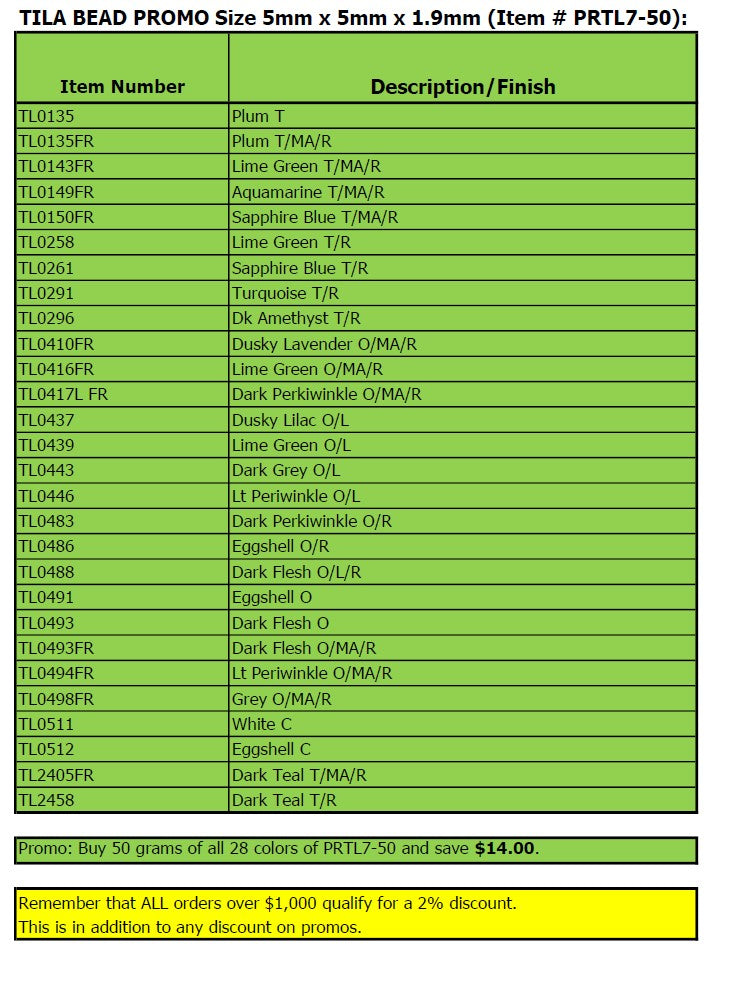 28 Colors of Tila Beads, Size 5mm x 5mm x 1.9mm, 50 Grams Each - $14.00